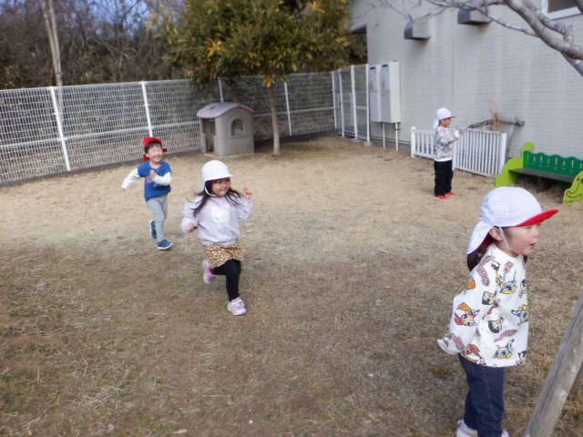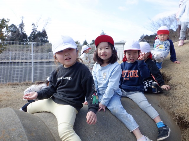 その後は、築山に行って遊びました。少しでも長く外で遊べるよう、急いで準備をしていました!