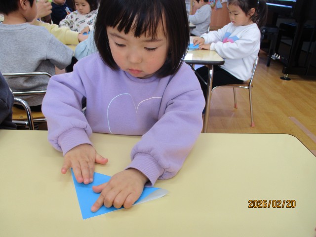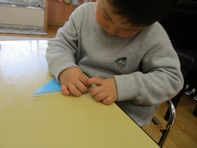 綺麗に折ることができると「できたよ~♪」と嬉しそうに見せてくれました。