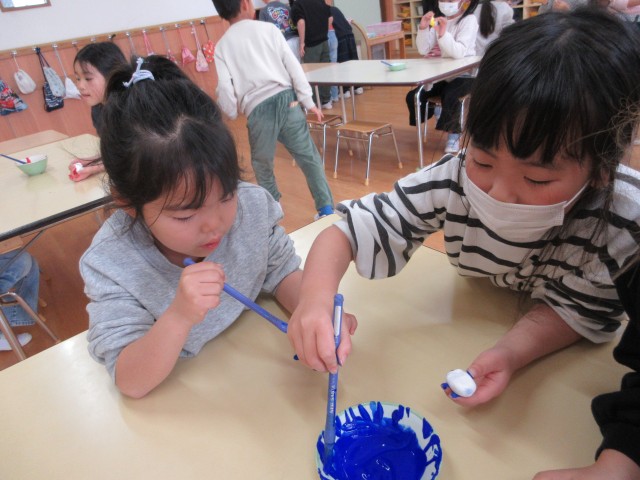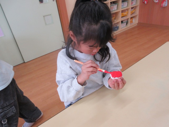 その後は、飾りつけのパーツに色を塗りました。白い部分がないようすることを意識しながら丁寧に行っていました♪