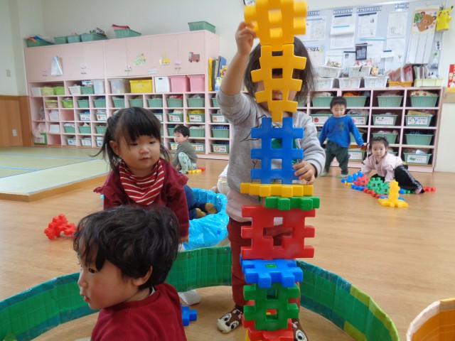 その後は、中型ブロックで遊びました。
