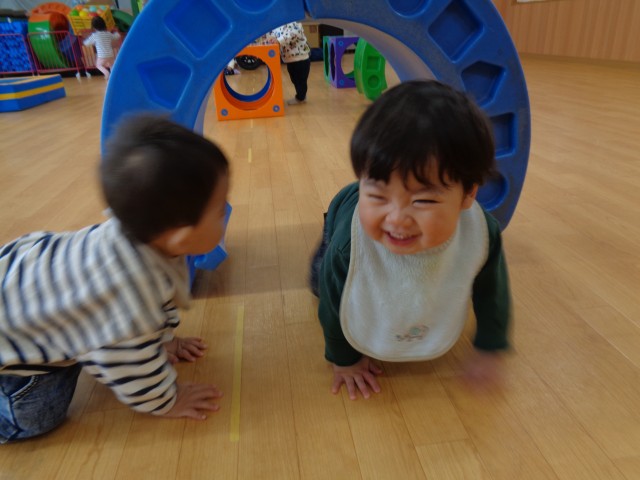ユニットサーフのトンネルをくぐるとお友達がいてニッコリ☺