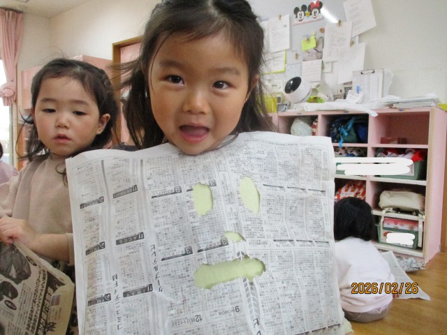 残りの時間は新聞紙遊び♪