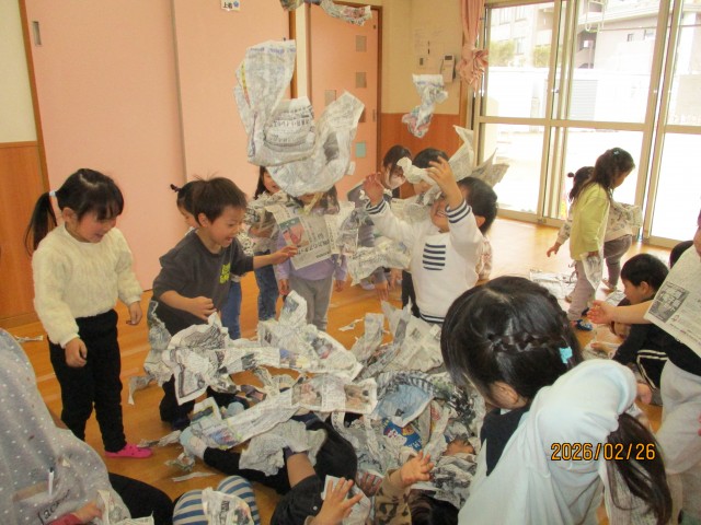 紙吹雪やベットのようにして遊んだりして楽しみました。