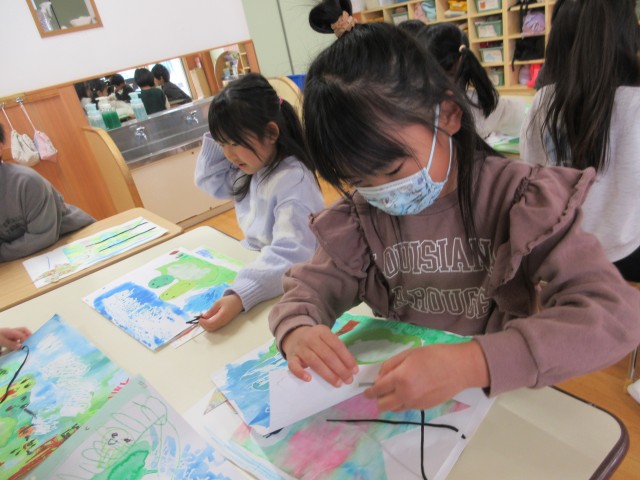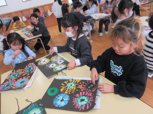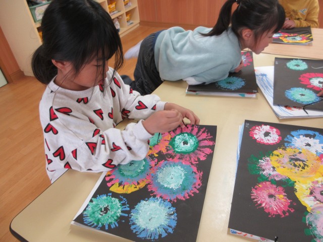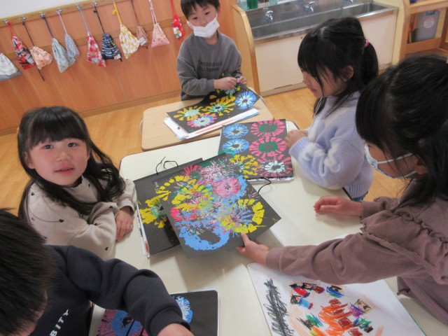 模様が出来ると「見て~上手に出来たよ~」「きれいな模様になった~」と、互いに見せ合って喜んでいました。