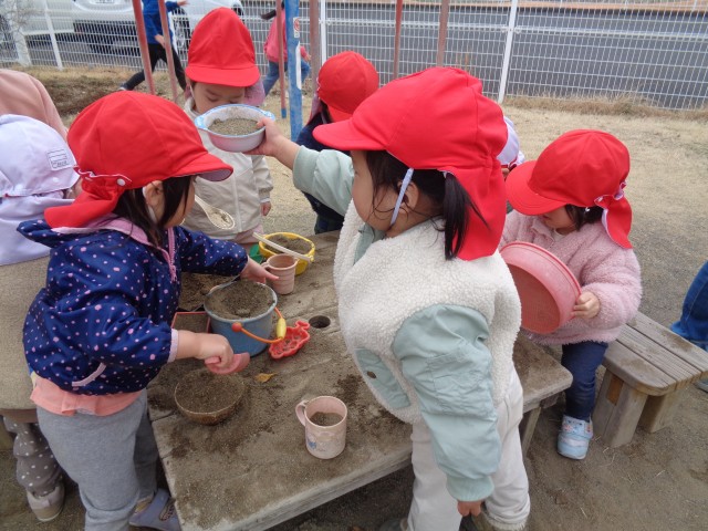 スコップで砂をすくったりバケツに砂を入れたりして楽しんでいました♪
