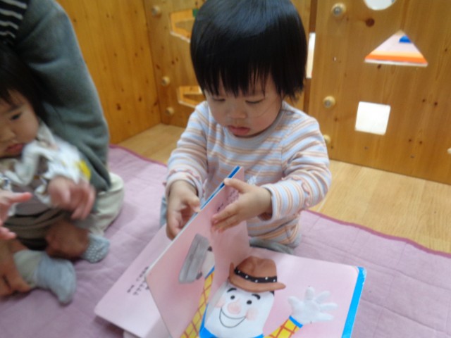じっくり絵本を見ていました。絵本が好きなつぼみ組の子どもたちです♪