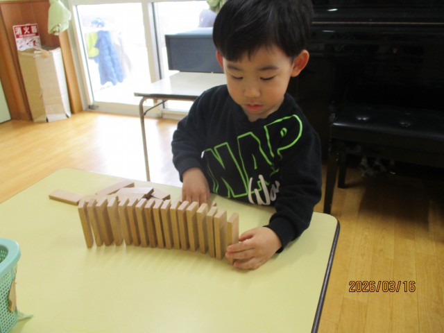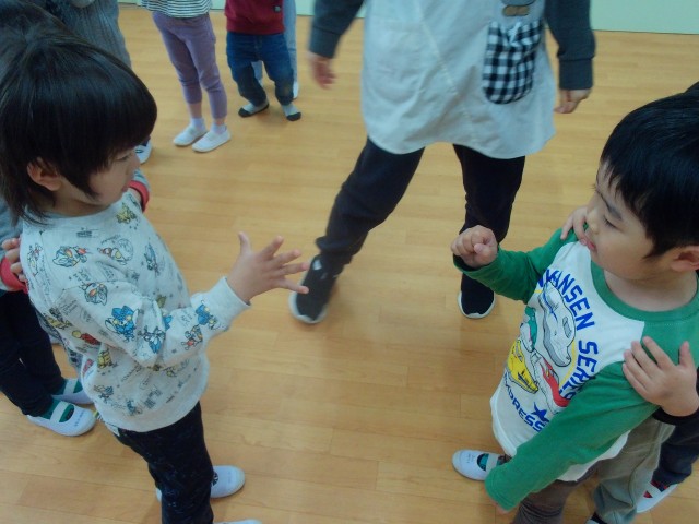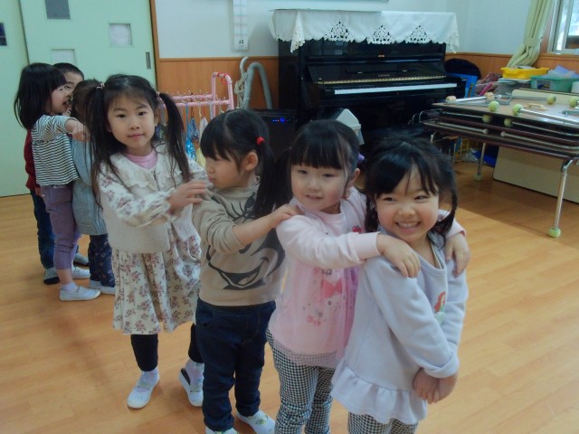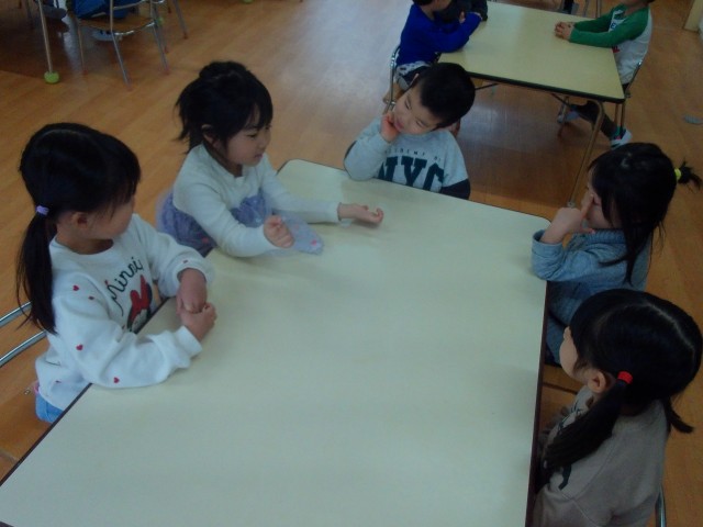 ジャンケン列車をしました。以前までは勝ちたい気持ちが強く後出しをしたり、負けると泣いてしまったりする子が多かったのですが今日は、終始笑顔でルールを守りながらゲームを楽しんでいました。ゲームの後は、ジャンケン列車で勝った人から順番にくじを引いて今年度最後の席替えをしました。