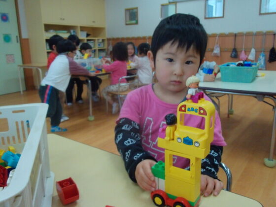 今日から新年度が始まりました。ドキドキしながら登園した子どもたちでしたが、お友達が一緒だということに気が付くとほっとしたようで朝から目新しい玩具で夢中になって遊んでいました。