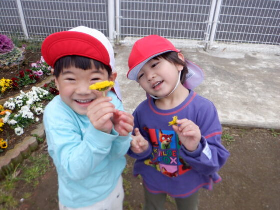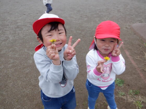 戸外に出て、遊具などで自由に遊びました。真っ先に桜を見つけて「見て!かわいい‼」と嬉しそうなこどもたち。「ピンクだね‼綺麗だね!」とお友達と興味津々で見ている姿が微笑ましかったです♪暖かくなりタンポポやつくしも咲いていて、手に取ったりじっくり見たりしていました♪好きな遊具でも沢山遊びました☆