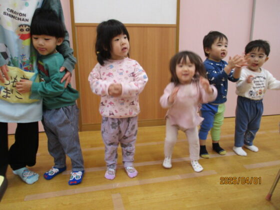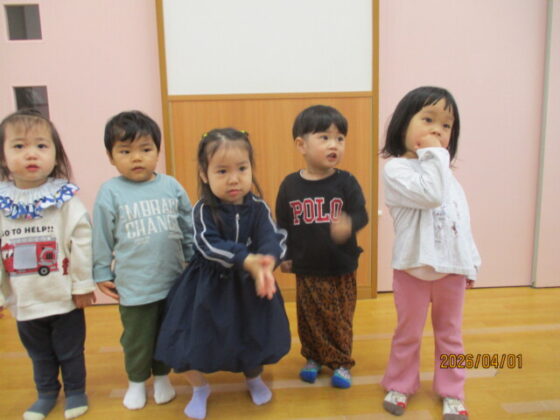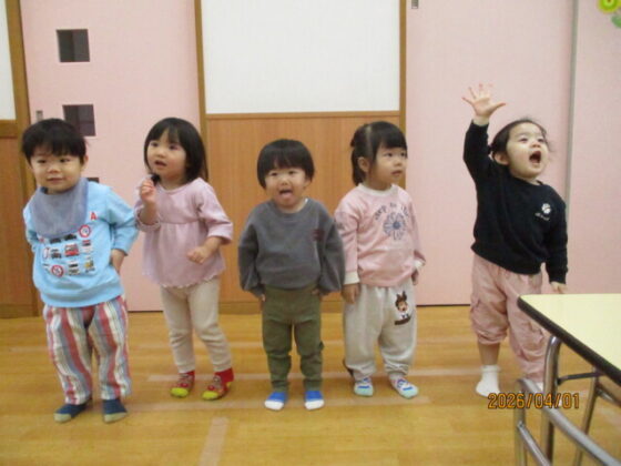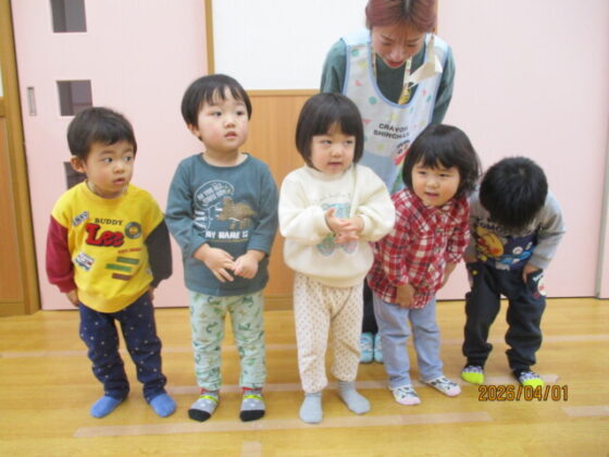 朝の会では大きな声で元気な歌を聞かせてくれました。呼名では、名前を呼ばれると大きな声で「はい!」と返事ができ、進級したことを喜んでいるように感じられました☺