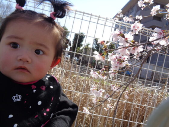 とてもいい天気だったので、後半はテラスに出て遊んだり、順番に散歩カーに乗って園庭の散策をしたりしました。桜の下に行くと、手を伸ばして触ろうをしていました。もっと乗りたいと降りることを嫌がる子もいました。慣らし保育中で泣いていた子も、戸外に行くと泣き止み、春の気持ち良さを感じている様子でした。