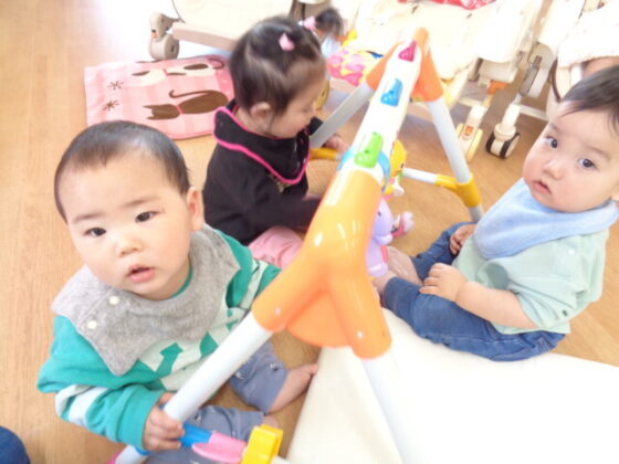 お部屋の中では、ベビージムに皆が集まって音を鳴らす様子が可愛らしかったです♪