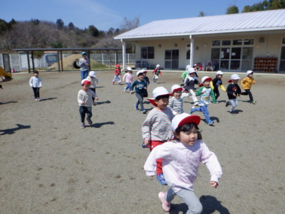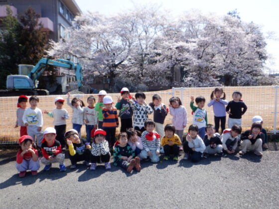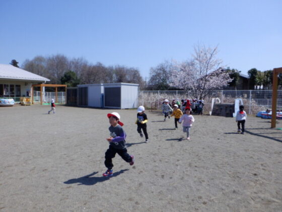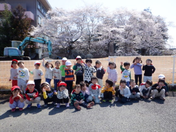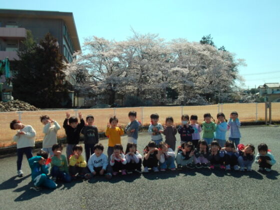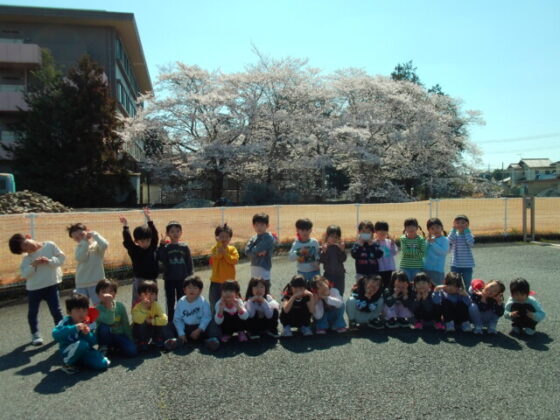 最後は駐車場近くにある大きな桜の木と一緒に写真を撮りました♪皆素敵な表情をしていますね♪その後は、園庭を沢山走りました。