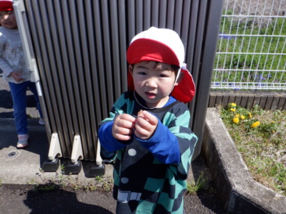 朝の会の時に、「たんぽぽや虫も探してみようね♪」と子どもたちと話していると、「先生!たんぽぽ!見て!」と教えてくれました♪