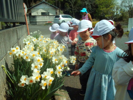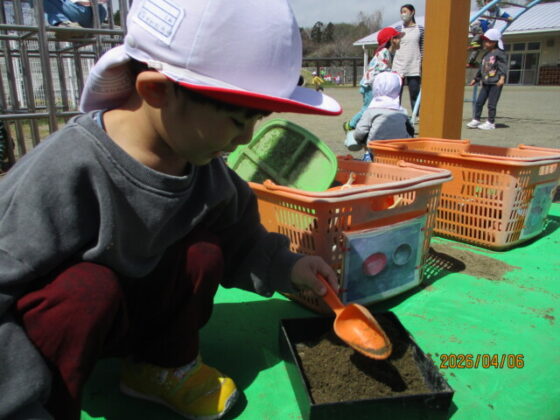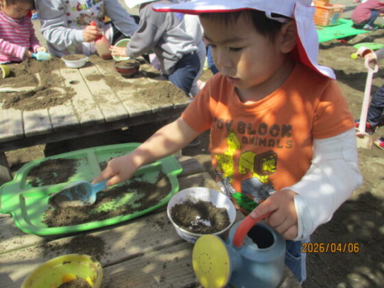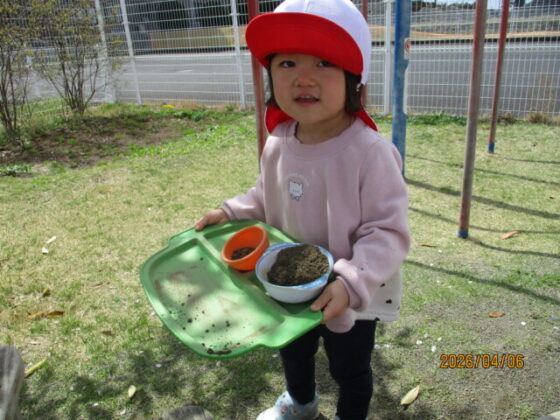 砂場近くの畑で、「先生!つんつんつくしがあったよ♪」「たんぽぽだー!」と春の草花を見つけ、嬉しそうに教えてくれました♪