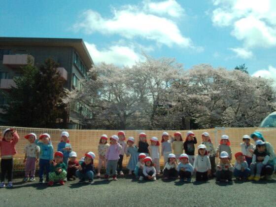 散歩の最後は保護者駐車場に行き、みんなで桜を見ました。休みの日にも桜を見に行ったこと、とってもきれいだったこと等沢山教えてくれました♪
