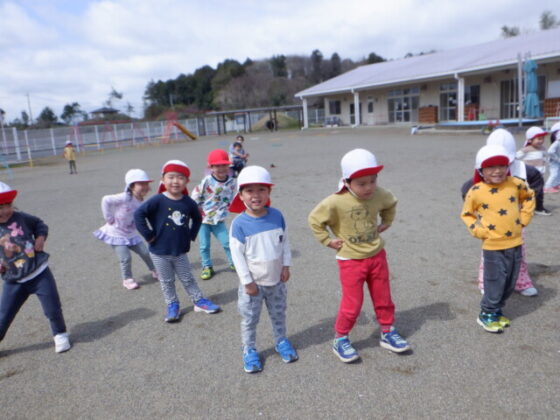 戸外でだるまさんの一日を楽しみました。初めは「寝た」「踊った」「ラーメンを食べた」の3つのポーズで行ないました。鬼の掛け声をよく聞き、、、、振り向くとすぐに言われたポーズをとっていました♪