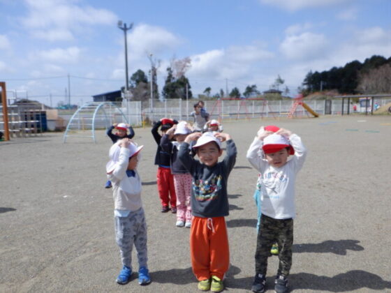 園内散歩をしました。前の友達について間を開けないように意識しながら歩きました。園内だったこともあって、間隔があいてもあまり気にしていない子もいましたが、近くの友達に「前!」と声をかけている意識が高い友達もいました。春の植物を見つけると嬉しそうに報告してくれる子どもたちでした☺その後は汗だくになりながら、伸び伸びと戸外遊びを楽しんでいました。