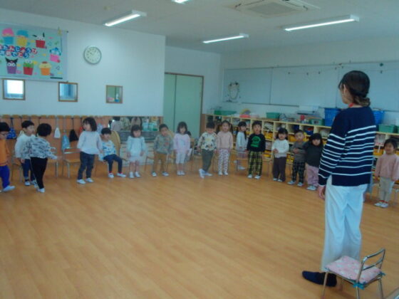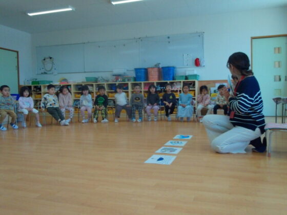 ECCに参加しました。ゆり組さんは初めてのECCに少し緊張しながらも嬉しそうに参加していました。たんぽぽ組、うめ組は先生が発言した言葉を元気よく言って、発言することを楽しんでいました。歌が始まるとノリノリで歌うかわいい子どもたちです☺