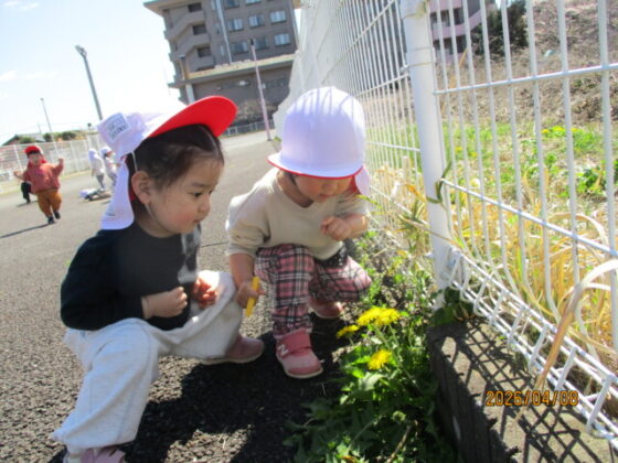 たんぽぽが咲いていると指差しをしたり保育士に見せたりしていて、とても微笑ましかったです♪