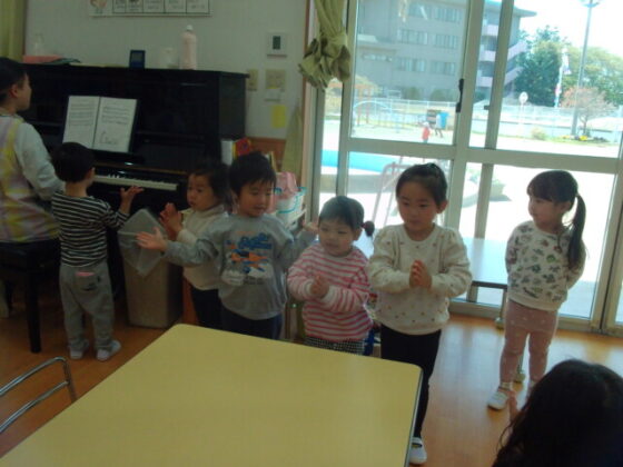 今日はグループ毎に前に出て歌の発表をしました☺