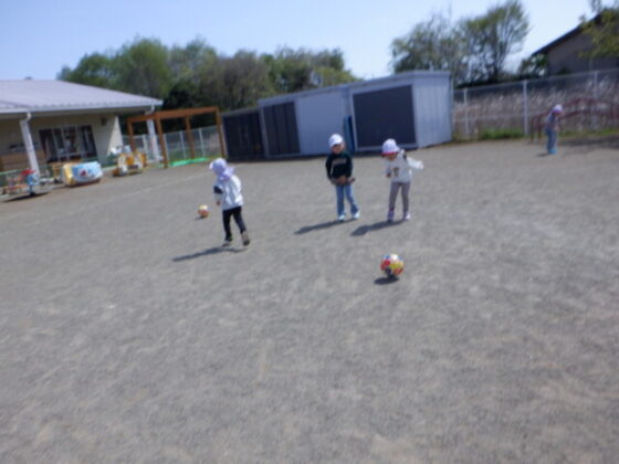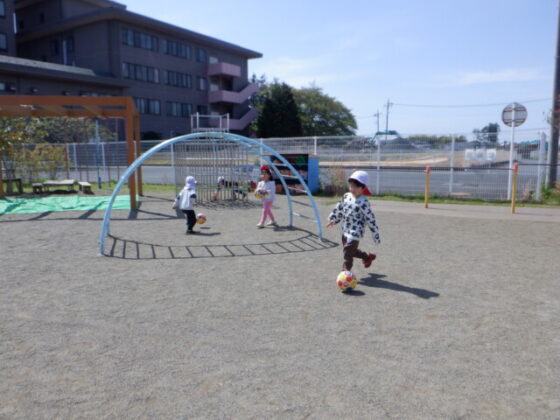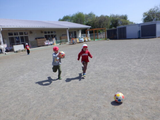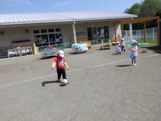 ボール遊びでは、昨日のサッカー教室で行ったことを実践!「見て見て!」と出来るようになったことを得意げに見せてくれましたよ♪お友達とボールを蹴り合ったり、ひたすら遠くへ蹴ったりと様々な遊び方で楽しみました♪