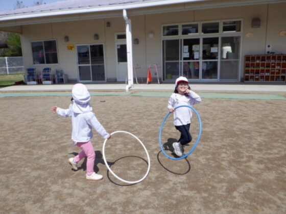 フラフープに入り、、追いかけっこ♡「きゃー♡」と声を出しながら夢中で逃げていました♪とても楽しそうですね♪