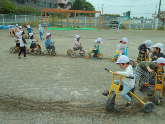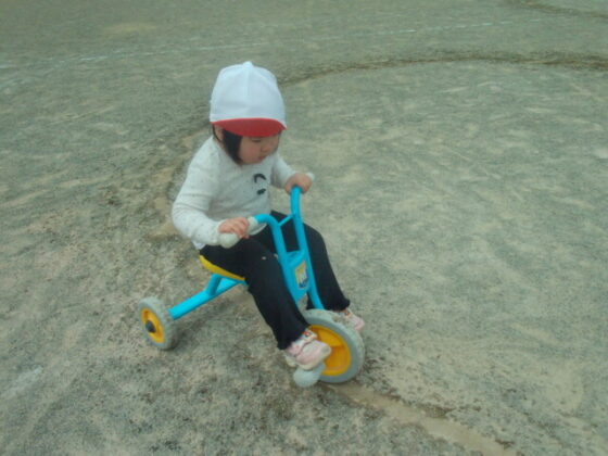 「だるまさんがころんだ」をした後は、三輪車に乗って遊びました。