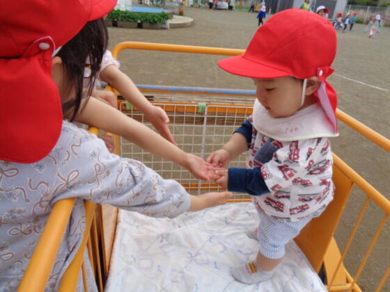 散歩カーを押す保育士のお手伝いをしてくれる子もいて微笑ましかったです♪